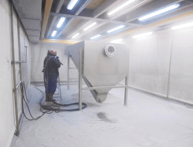Afin d’éviter contamination, nous disposons des halles de production séparé pour traitement des aciers divers. Toutes les pièces détachées reçoivent un traitement final par décapage au jet de billes de verre. Notre cabine de sablage est conçue pour traitement des pièces en inox avec une longueur maximum de 10 mètres. Ceci pour des pièces de fabrication Snoek ou pour vos propres équipements.